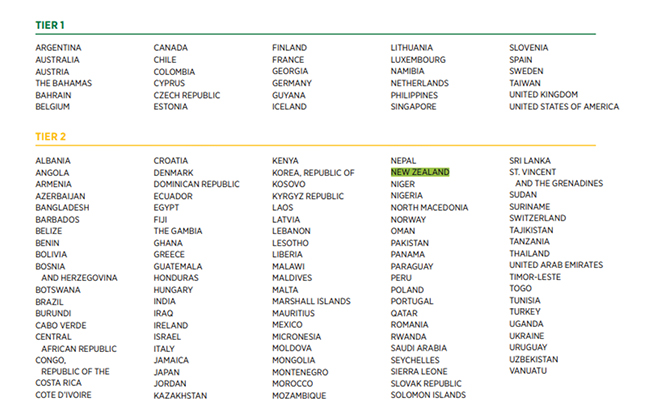 After its disconcerting drop from Tier 1 to Tier 2 in last year's report (where it had ranked since 2004), New Zealand has remained on the Tier 2 list.