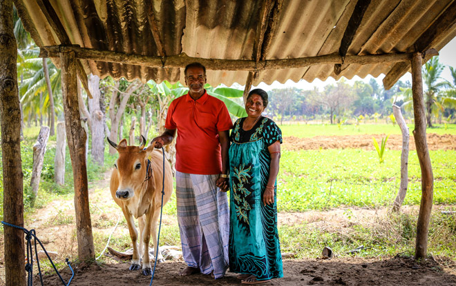 Selina and her husband are part of Yugashakti’s dairy project in Sri Lanka, which has climate-smart agriculture integrated in their approach to dairying. Photo: Tearfund