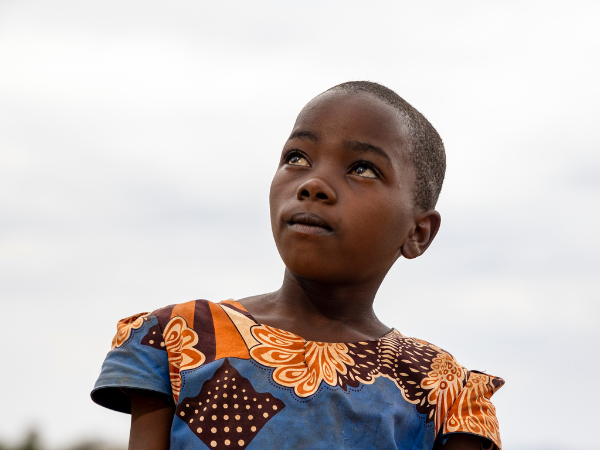 Eight-year-old Stella looks to the skies above her village in Ketusi County, Kenya, where rain has failed for three consecutive seasons. Crops have withered, and food is scarce. The prolonged drought is causing prices to rise sharply.