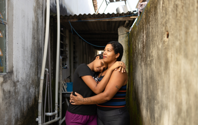 Tailani comforting her eldest daughter Hemilly. Shot for Compassion Photo/ Sara Navarro