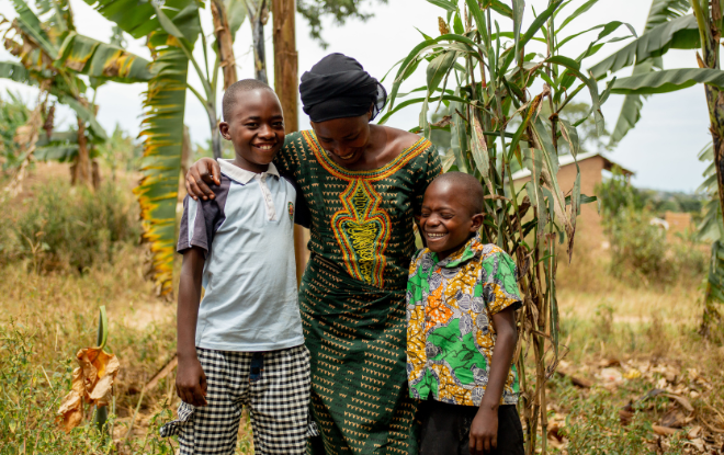 Florance with her two sons. Shot for Medical Teams International/Lauren Odderstol