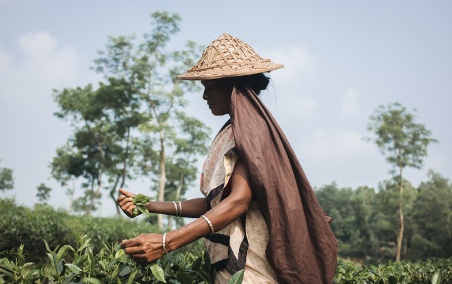 Dipty works in the tea fields of northern Bangladesh to provide for her children. Her work, from dawn to dusk, results in just NZ $2 for 23 kilograms of tea leaves. She has no other options to earn an income.