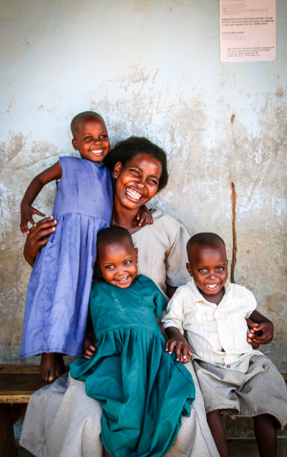 Annet and her three triplets. Shot for Compassion Photo/ Helen Manson