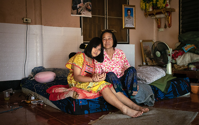 Rujira sitting next to her grandmother Khumtieng. Photo: Compassion