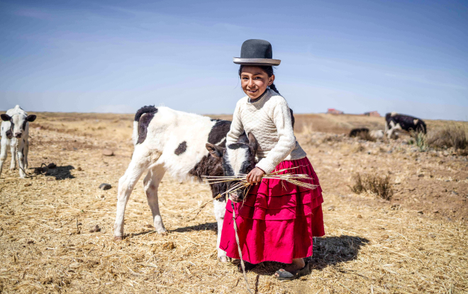 “I want to tell you about my little calf Flor (Flower). When I untie her, she always jumps around with me. When I'm sad or happy, she is always beside me because I give her barley, bran and water. She gets very happy, and I do too,” says Luz Clara.