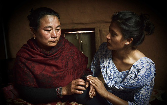 In a tiny dark concrete room in Makwanpur, Nepal sits a woman wearing a beautiful floral dress with a red shawl. Her posture and eyes reveal a palpable sense of pain. *Setimaya was just 19 when she was trafficked—30 years later, she is ready to tell her story.