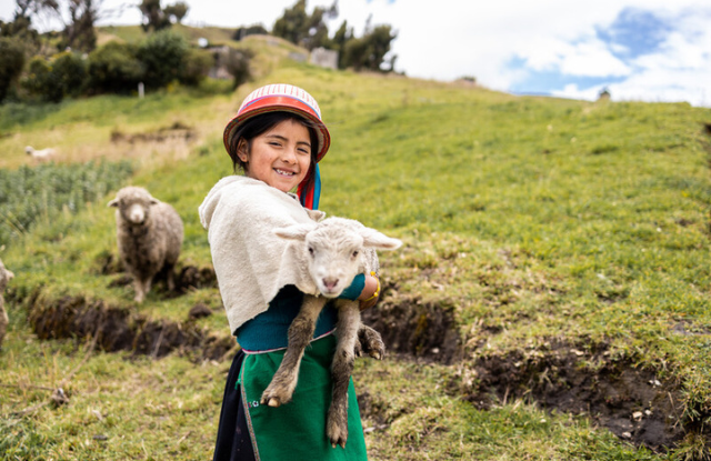 At dawn every day, seven-year-old Lizeth slips out of her room stealthily, trying not to wake her sister who sleeps in the same bed. She puts on her cloak and heads out of her house. She picks up her work tools in the warehouse and walks alone towards the mountain, where she cuts the grass to feed her sheep.